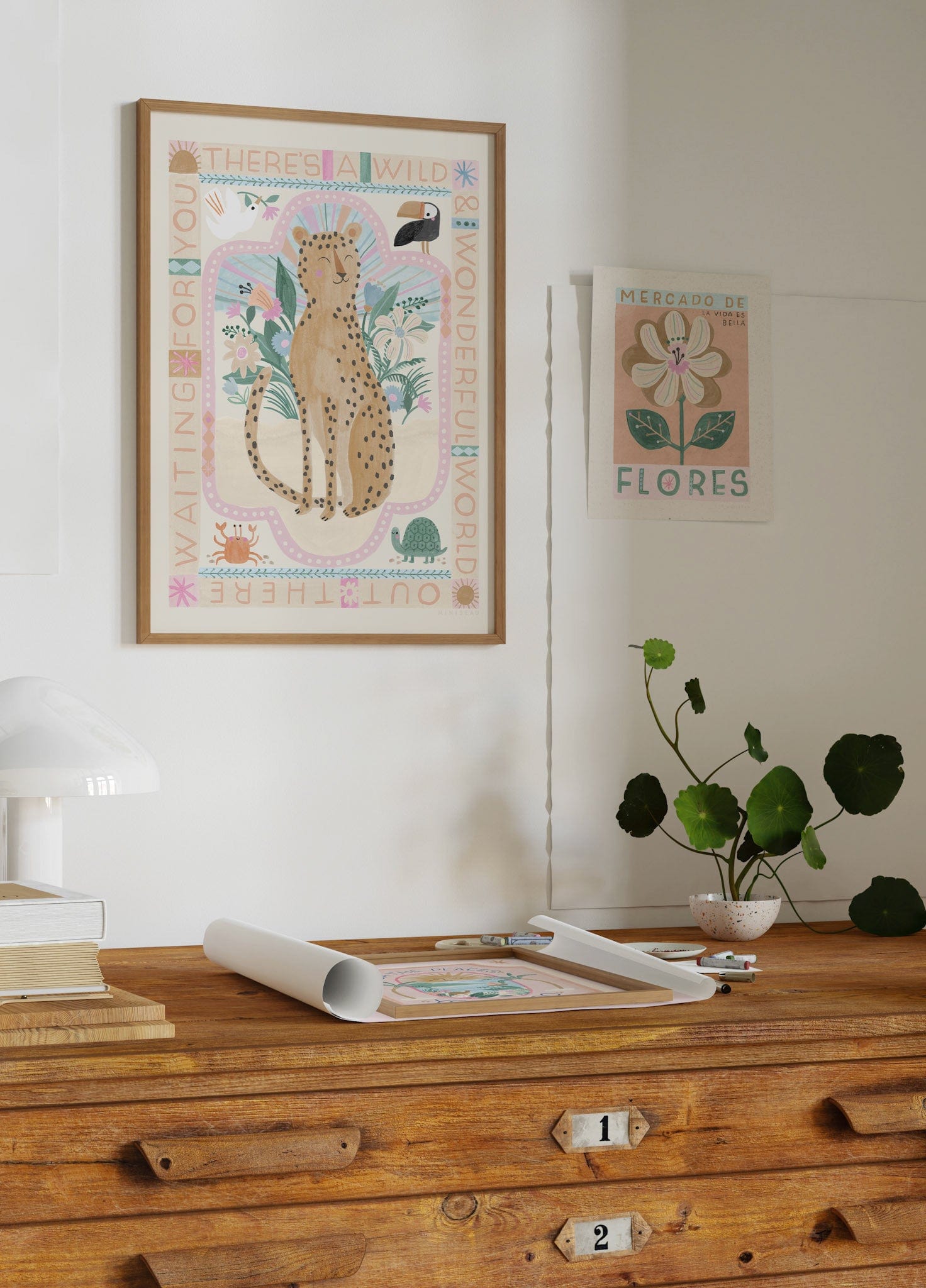 There’s a wild and wonderful world, waiting out there for you. Little explorers will find endless inspiration in the Wild, Wonderful World Leopard Print. Hand-painted with exquisite detail by Minibeau's artist, Laura Yates, this vibrant and bohemian print will add a touch of wanderlust to any nursery, bedroom, or playroom.