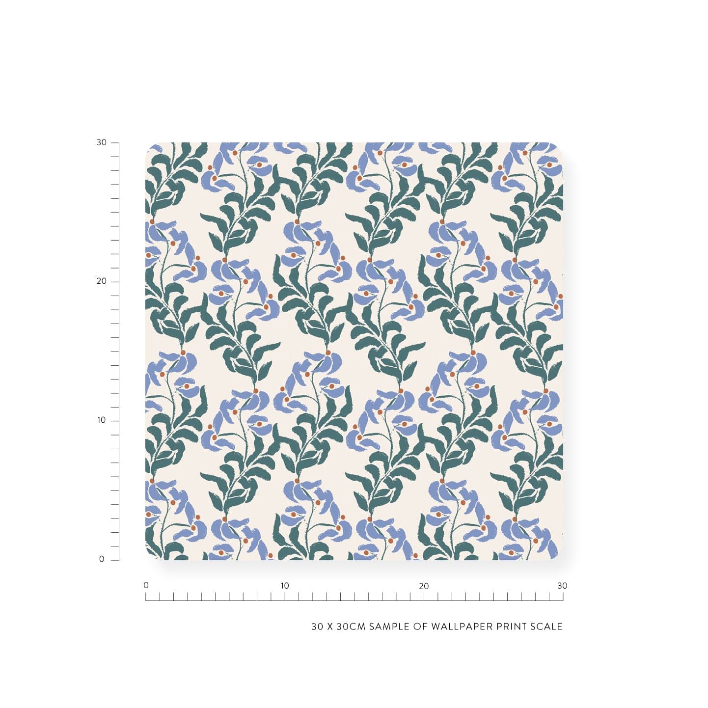 Bask in the beauty of Becca Barker's traditional woodblock-inspired wallpaper from Minibeau! Intricate linework and delicate details have been carefully crafted by hand, bringing modern vibrancy and muted neutral tones to any nursery or playroom.