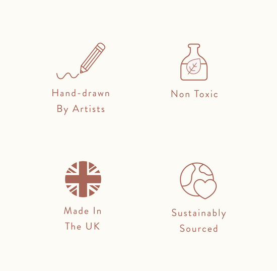 Printed in the U.K on sustainably sourced paper our inks pass the highest tests in the world to show they contain no-nasties'.